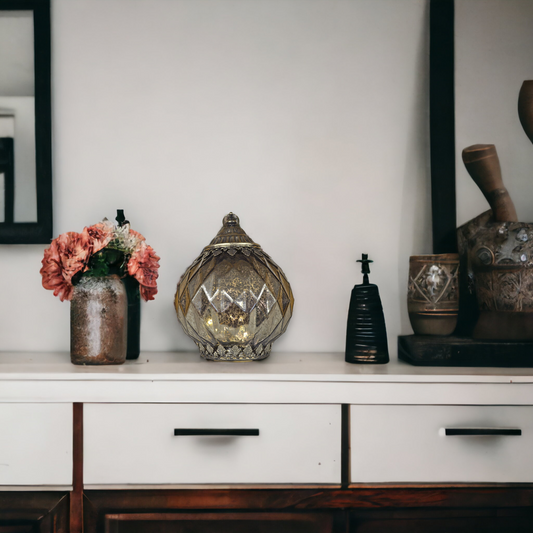 Black Round Metal Frame Lantern Battery Operated with Amber LED Bulb
