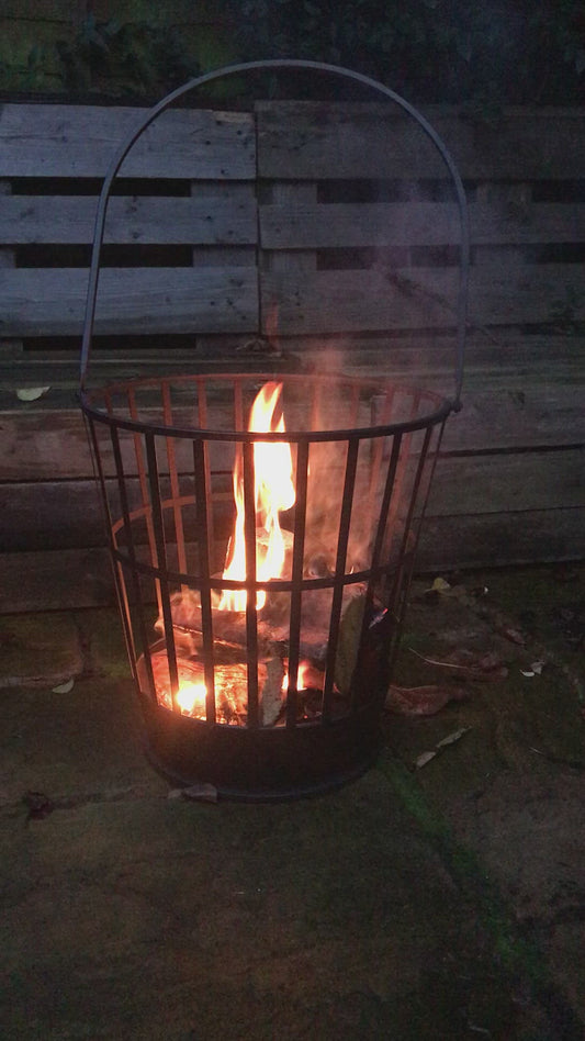 Black Fire Pit Bucket with Laser Cut Design 45cm