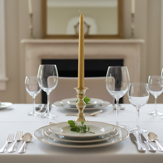 Pack of 12 Metallic Gold Wax Dinner Candles