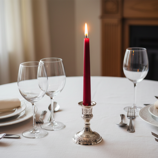 Set of 2 Red Metallic Christmas Tree Dinner Candles