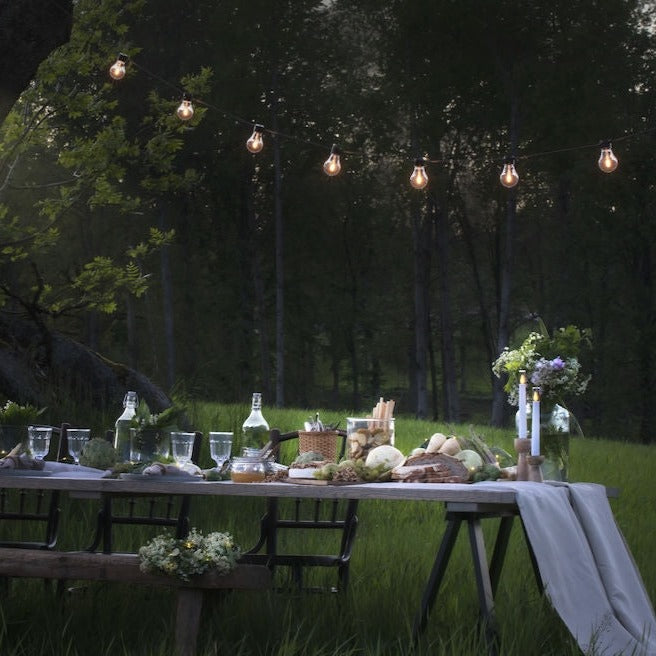 Brighten up your home and garden all year with these beautiful amber LED lights. The lights are dimmable for you to create the perfect atmosphere! Great for summer garden parties and outdoor dining. Create a warm glow on winter days outside or indoors around the Christmas tree. With replaceable bulbs there is no need to take the whole light set down just pop out and push a new bulb in!