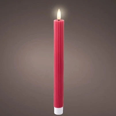 Set of 2 Pink LED Wick Carved Wax Dinner Candle